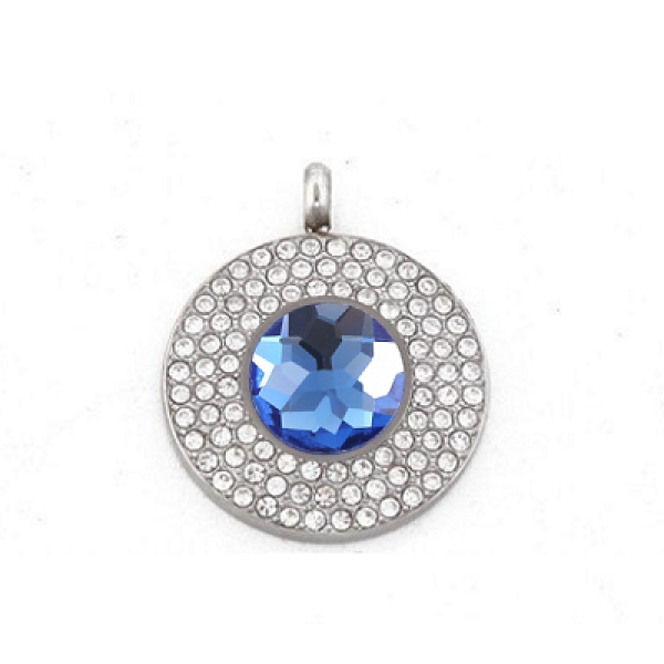 Ciondolo in acciaio inossidabile lucido con cristalli bianchi