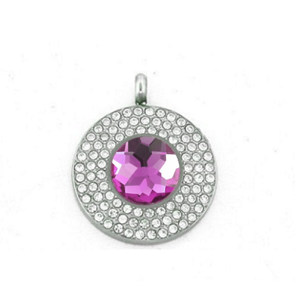 Ciondolo in acciaio inossidabile lucido con cristalli bianchi